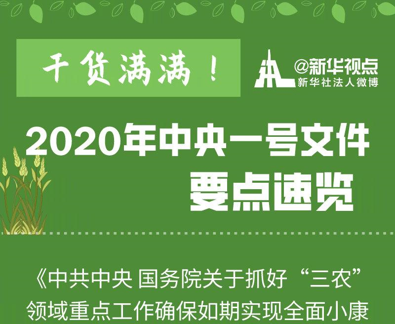 做好2020年“三農”工作總的要求是,堅持以習近平新時代中國特色社會主義思想為指導,全面貫徹黨的十九大和十九屆二中、三中、四中全會精神,貫徹落實中央經濟工作會議精神,對標對表全面建成小康社會目標,強化舉措、狠抓落實,集中力量完成打贏脫貧攻堅戰和補上全面小康“三農”領域突出短板兩大重點任務,持續抓好農業穩產保供和農民增收,推進農業高質量發展,保持農村社會和諧穩定,提升農民群眾獲得感、幸福感、安全感,確保脫貧攻堅戰圓滿收官,確保農村同步全面建成小康社會。