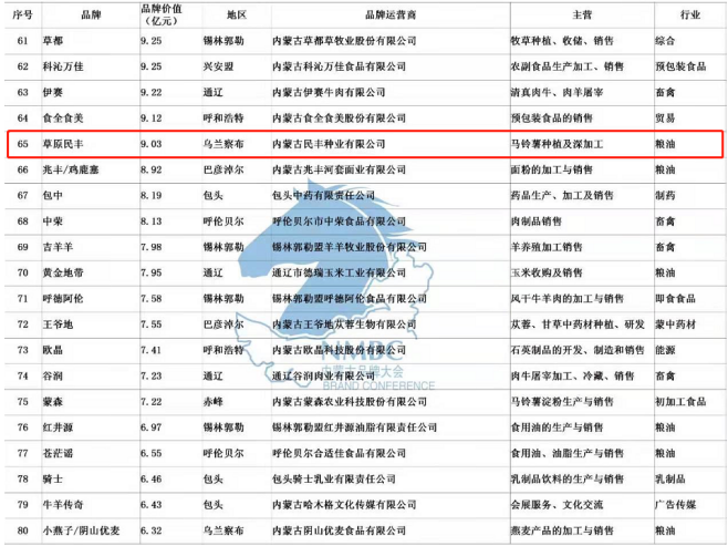 公司注冊有種薯“草原民豐”、鮮薯“敕勒川”和“塞宜德”、燕麥加工系列“陰山優(yōu)麥”等品牌商標(biāo),其中“草原民豐”2013年被授予“內(nèi)蒙古著名商標(biāo)”,“草原民豐”牌馬鈴薯系列產(chǎn)品2013年被授信為“中國著名品牌”,并榮獲“第十一屆中國國際農(nóng)產(chǎn)品交易會參展產(chǎn)品金獎(jiǎng)”。公司自主選育的馬鈴薯新品種“民豐紅”,被評定為內(nèi)蒙古“名優(yōu)特”產(chǎn)品,2010年獲“中國民營科技創(chuàng)新成果金獎(jiǎng)”,2015年正式通過自治區(qū)品種認(rèn)定,同年榮獲“自治區(qū)主席質(zhì)量獎(jiǎng)”榮譽(yù)稱號。2017 年“民豐種業(yè)、草原民豐、敕勒川、塞宜德、陰山優(yōu)麥”品牌被評為內(nèi)蒙古農(nóng)畜牧產(chǎn)品市場領(lǐng)先品牌,2018年榮獲“自治區(qū)優(yōu)秀民營企業(yè)”稱號,2019年“草原民豐”品牌被評為“2019年內(nèi)蒙古馬鈴薯產(chǎn)業(yè)行業(yè)標(biāo)志性品牌”,內(nèi)蒙古品牌價(jià)值評估值9.03億元,在內(nèi)蒙古品牌總榜單排名第65位。2020年在抗擊疫情過程中,被湖北慈善總會、烏蘭察布紅十字會、烏蘭察布橋東社區(qū)等多地授予“愛心企業(yè)”稱號。