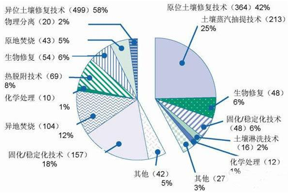 二、土壤修復技術。土壤污染已成為世界性環境問題,其修復技術已成為全球的研究重點。與西方發達國家相比,我國土壤污染現狀更為嚴峻。土壤修復可以采用原位修復或異位修復,主要包括物理修復、化學修復、生物修復和固化/穩定化處理等。