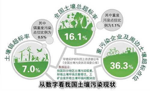 一、土壤污染現狀。2005年4月-2013年12月,環保部與國土資源部首次開展了全國土壤污染狀況調查,根據2014年《全國土壤污染狀況調查公報》調查結果顯示,我國當前的土壤污染超標率達到16.1%,并且耕地污染超標率達到19.4%,林地及草地的污染超標率高于10.0% 以上。2016年5月28日,國務院印發了《土壤污染防治行動計劃》,簡稱"土十條"。"土十條"的發布被認為是土壤修復事業的里程碑事件。隨著"土十條"的發布,國家陸續出臺了一系列法律法規及政策文件,如:《污染地塊土壤環境管理辦法(試行)》(2017年7月1日施行)、《農用地土壤環境管理辦法(試行)》(2017年11月1日施行)、《工礦用地土壤環境管理辦法(試行)》(2017年12月17日完成第一次征求意見)等等。這預示著土壤污染同大氣污染及水污染的防治同樣重要,土壤污染修復工作的開展,將減緩當前土壤環境惡化的加劇,為推進生態文明建設,加快建設美麗中國添磚加瓦。